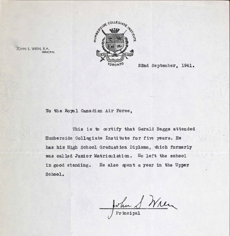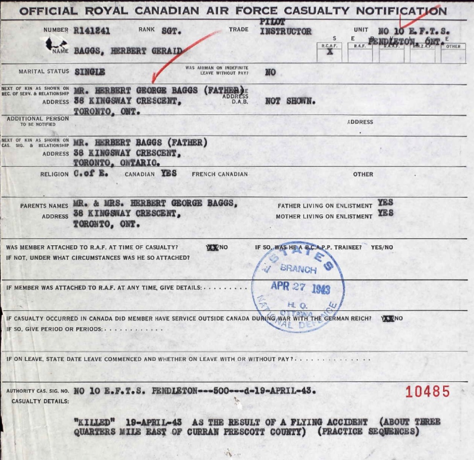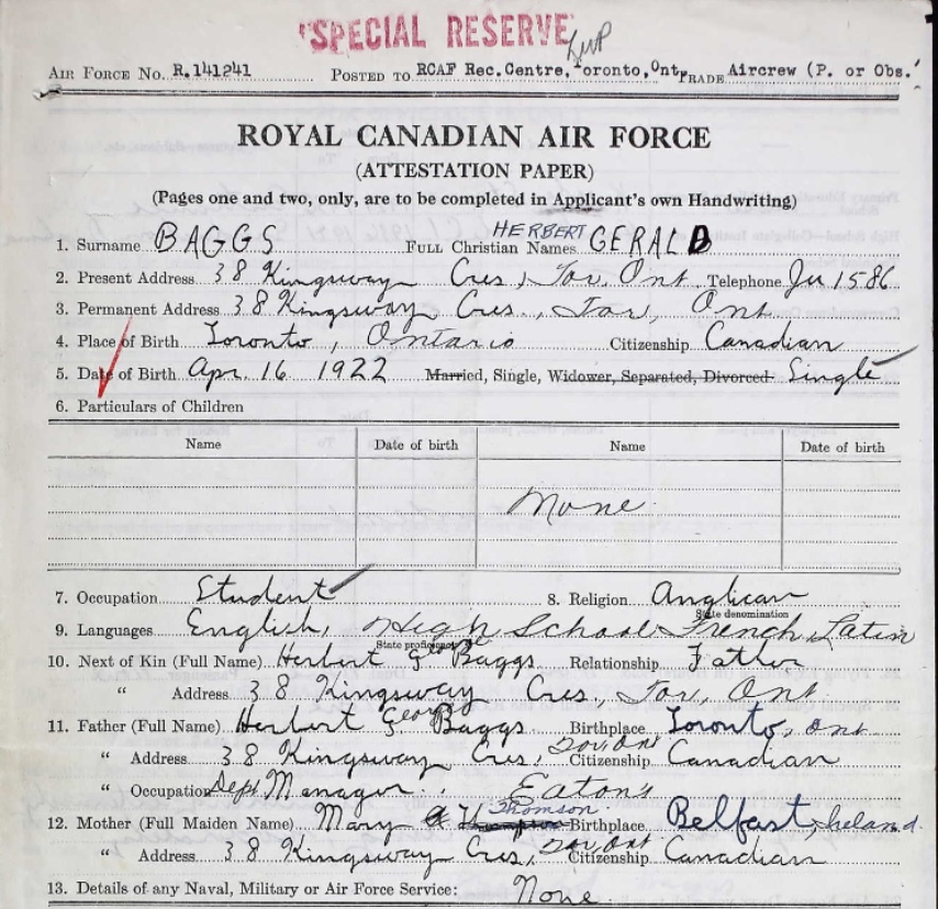 Fils de Herbert George et Mary Baggs, de Toronto, Ontario.