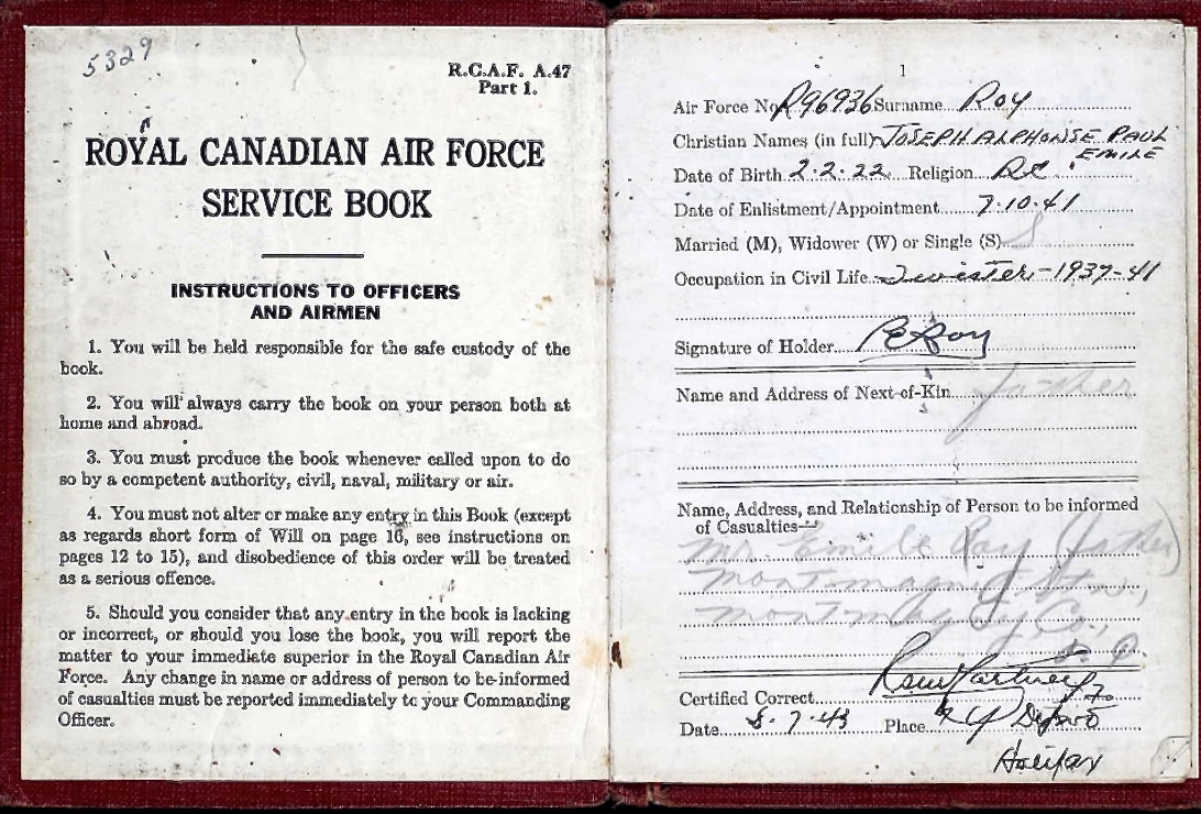 Galerie numérique de Sous-lieutenant d'aviation Joseph Alphonse Paul Emile Roy