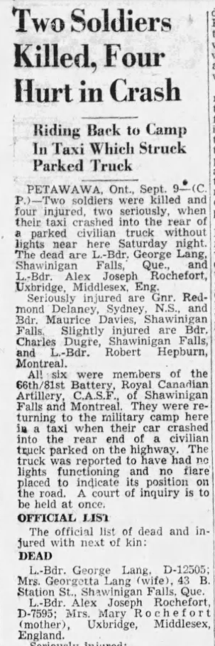 Fils de M. et Mme Alexander Lang, de Shawinigan Falls. Époux de Georgette Lang, de Shawinigan Falls.