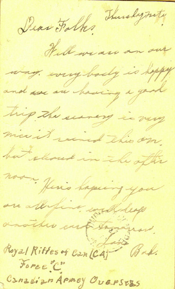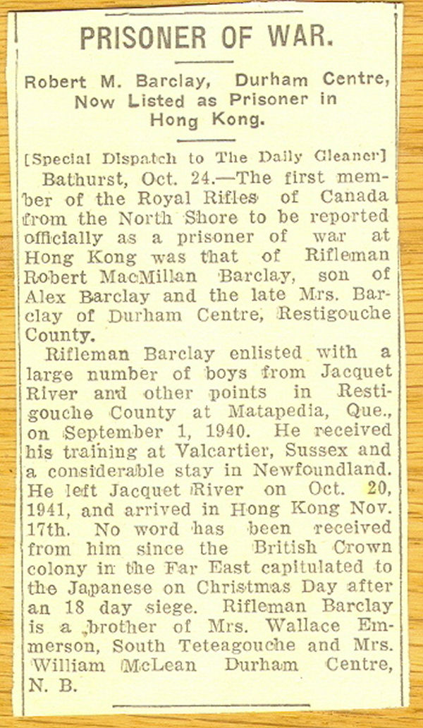 A servi au Québec, à Terre-Neuve avec la Force W, à Hong Kong avec la Force C, puis comme prisonnier de guerre. Il comptait 790 jours de service, dont 368 outremer.