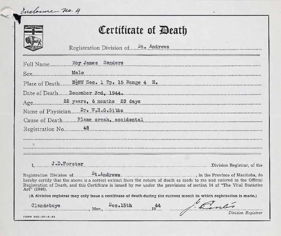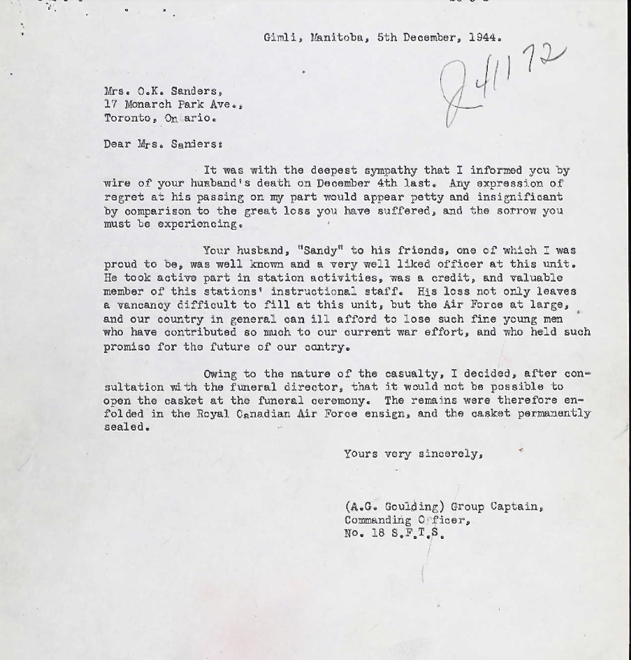 Fils de Thomas et Elizabeth Sanders de Toronto. Époux d'Olive K. Sanders de Toronto.