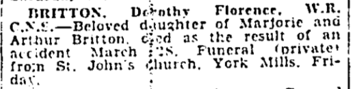 Fille de Arthur Hamilton Britton et Marjorie Florence Britton, de Toronto.