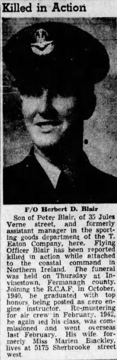 Fils de Peter et Margaret Ann Blair. Époux d'Emma Marien Blair, de Montréal, QC.