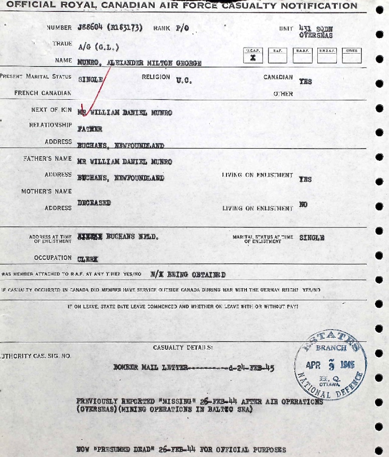Page 183 du Livre du Souvenir de la Terre-Neuve.
