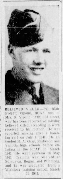 Galerie numérique de Sous-lieutenant d'aviation Blair Everett Vipond