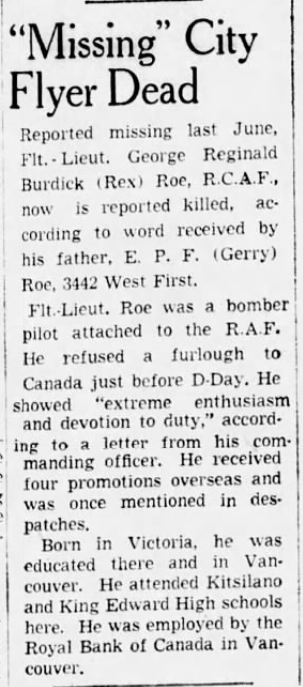 Fils de Edward Price Fitzgerald Roe et Matilda Henrietta Roe, de Vancouver, Colombie-Britannique, Canada.