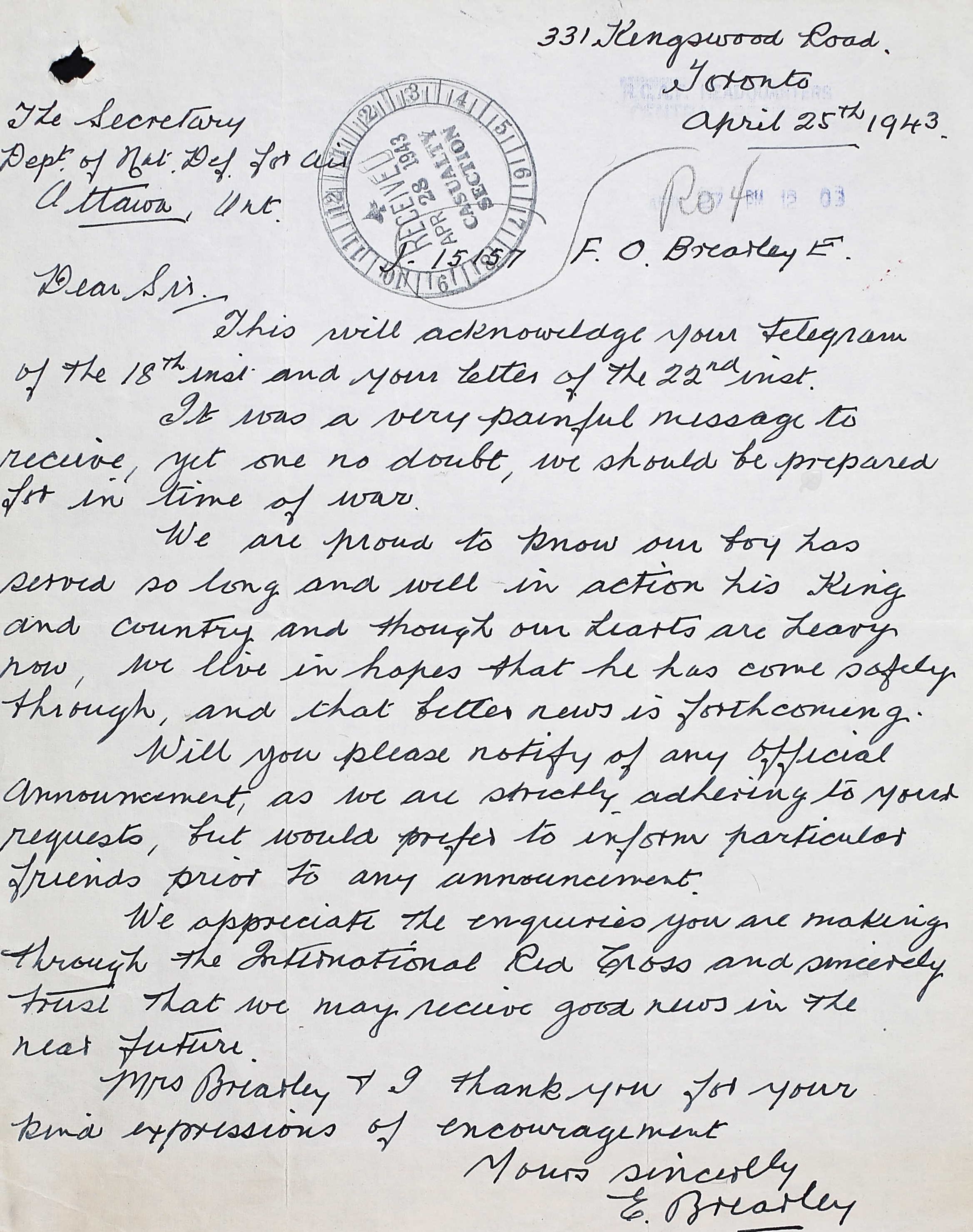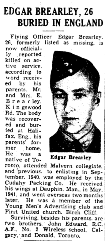 Fils de Edgar et Lillian Brearley, de Toronto, Ontario.