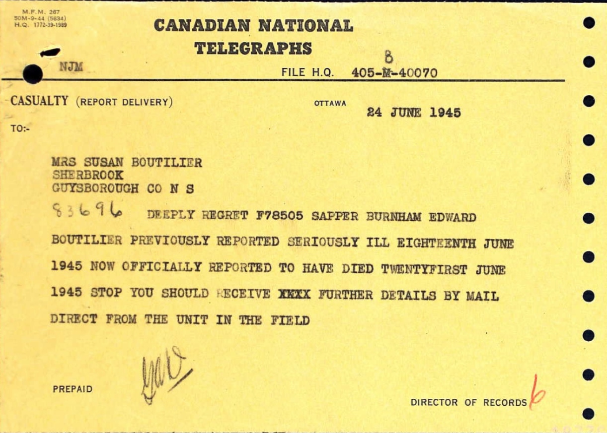 Galerie numérique de Sapeur Burnham Edward Boutilier