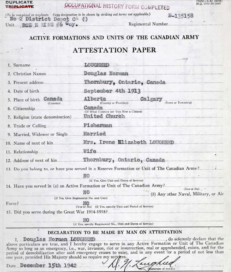 Galerie numérique de Sapeur Douglas Norman Lougheed