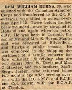 Fils de Samuel et Jean Burns, de Maple, Ontario.