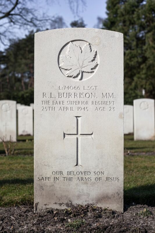 Frère du sergent Reginald Meredith Burrison décédé le 13 novembre 1944 pendant qu’il servait dans le 14th Canadian Hussars, R.C.A.C.