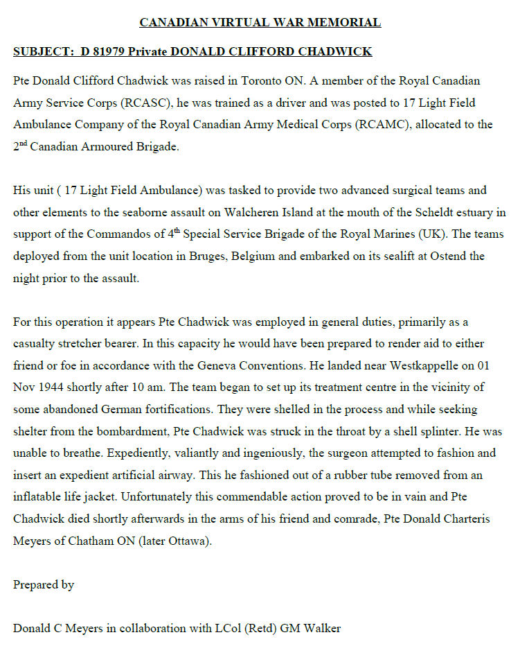 Galerie numérique de Soldat Donald Clifford Chadwick