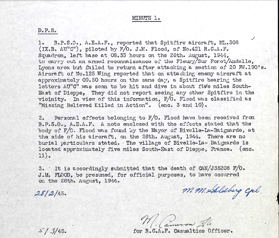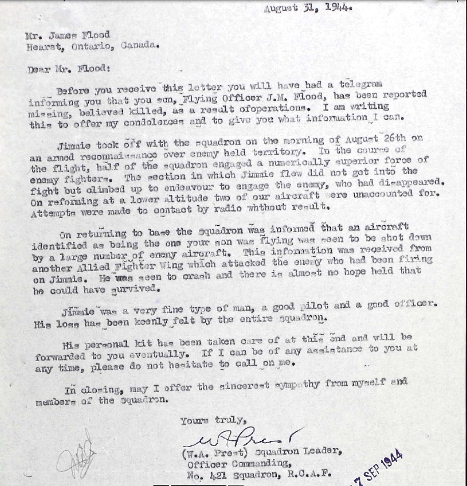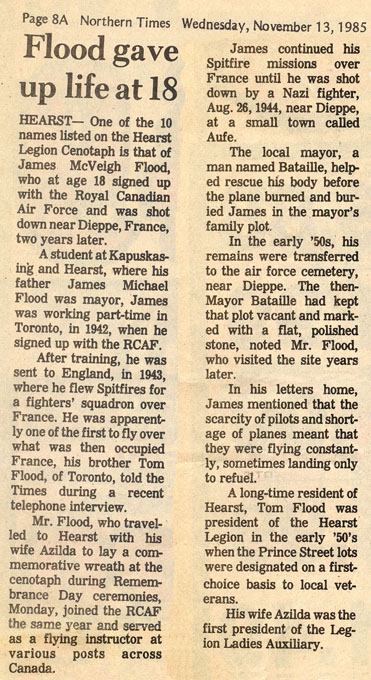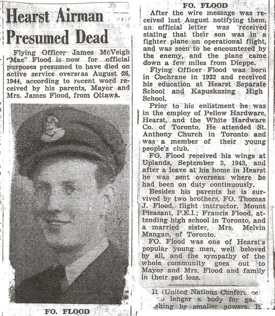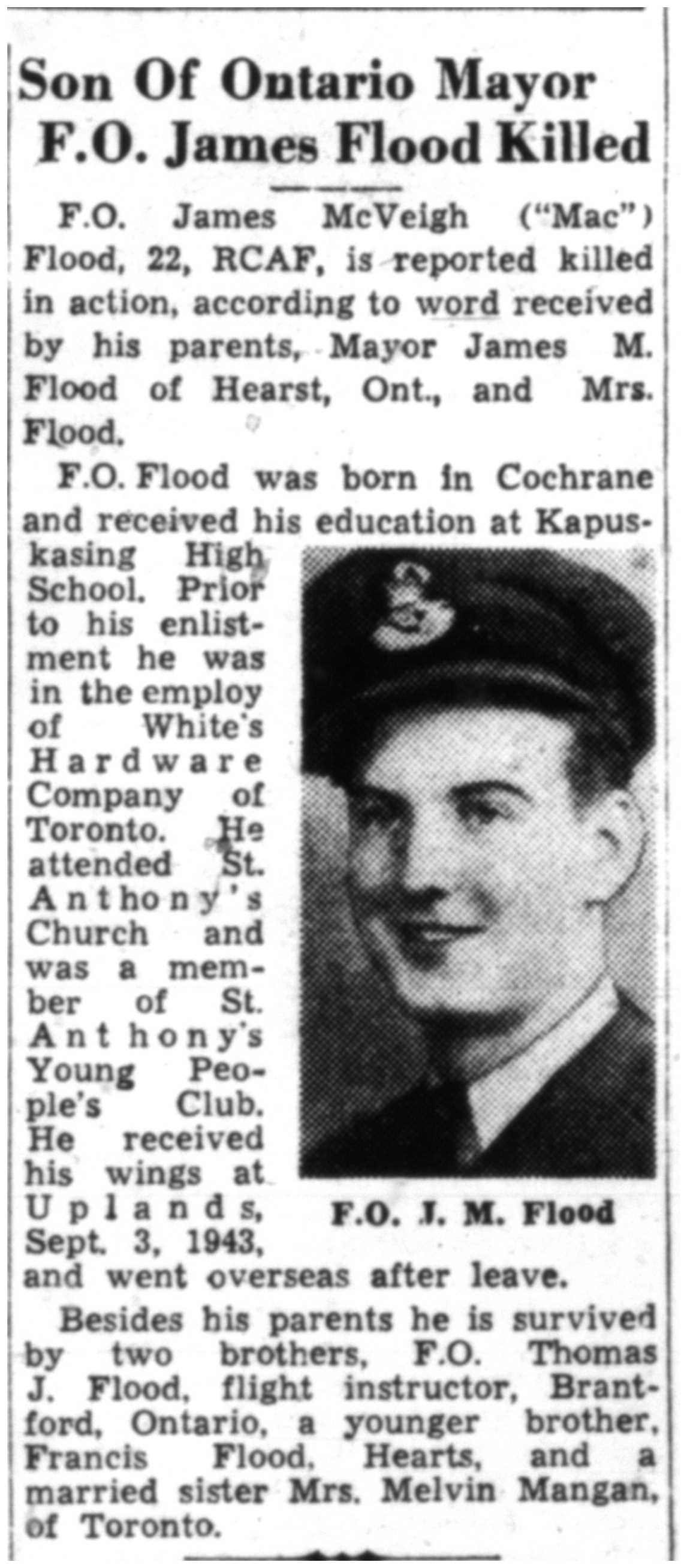 Fils de James M. et Nora Irene Flood, de Hearst, Ontario.