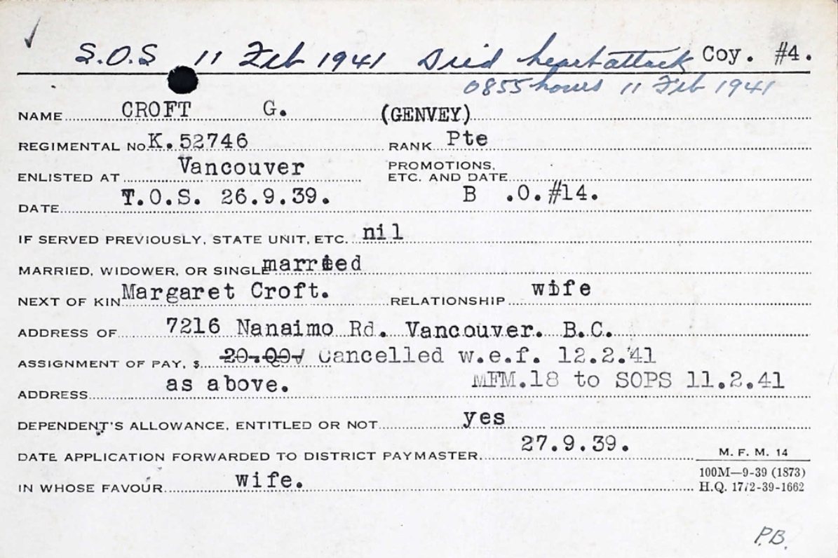 Fils de Charles et Susan Croft; Époux de Margaret May Croft, de Vancouver, Colombie-Britannique, Canada.