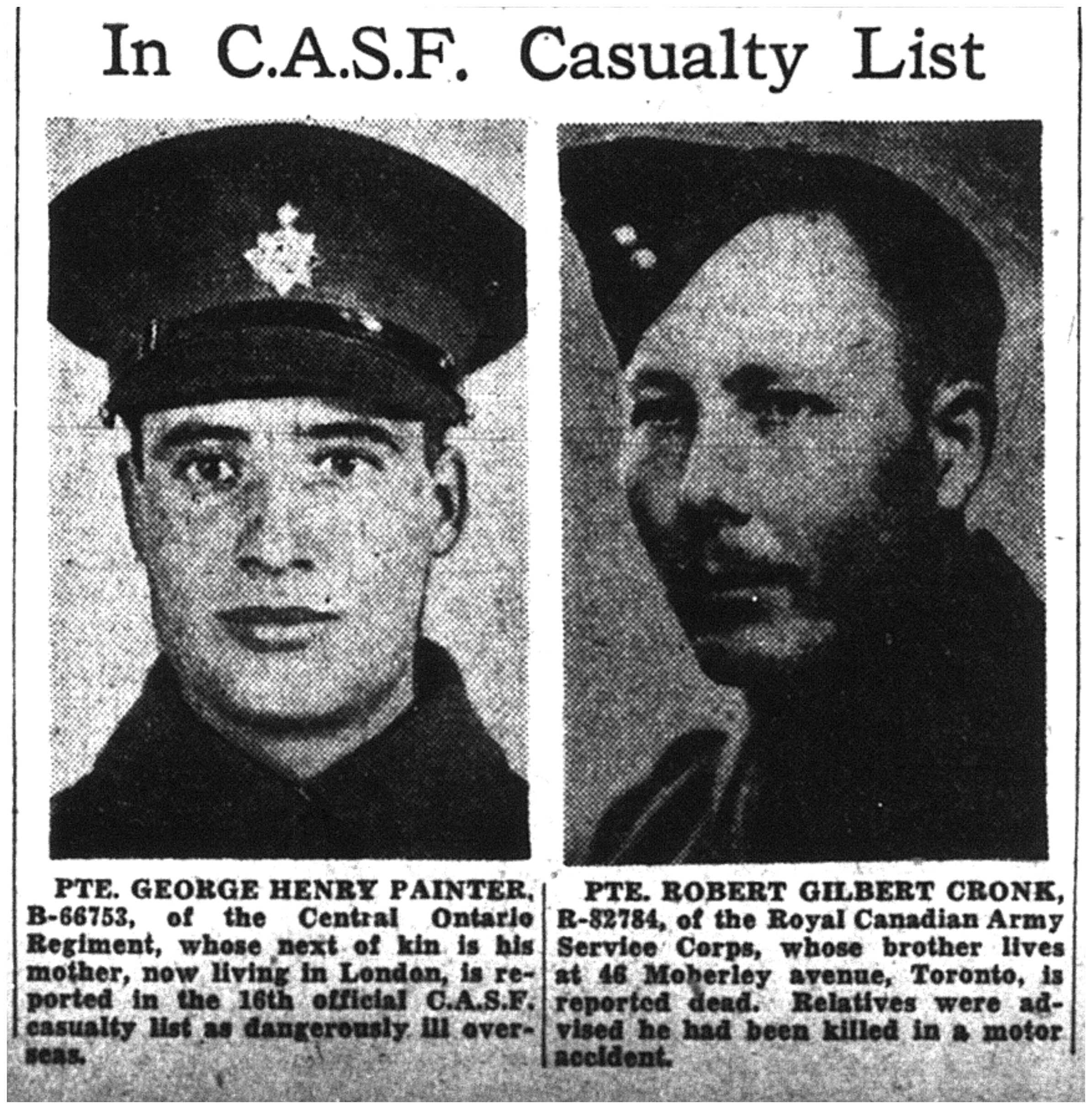 Galerie numérique de Soldat Robert Gilbert Cronk