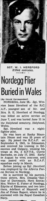 Fils de Bert E. Hereford et Anna E. Hereford, de Nordegg, Alberta, Canada.