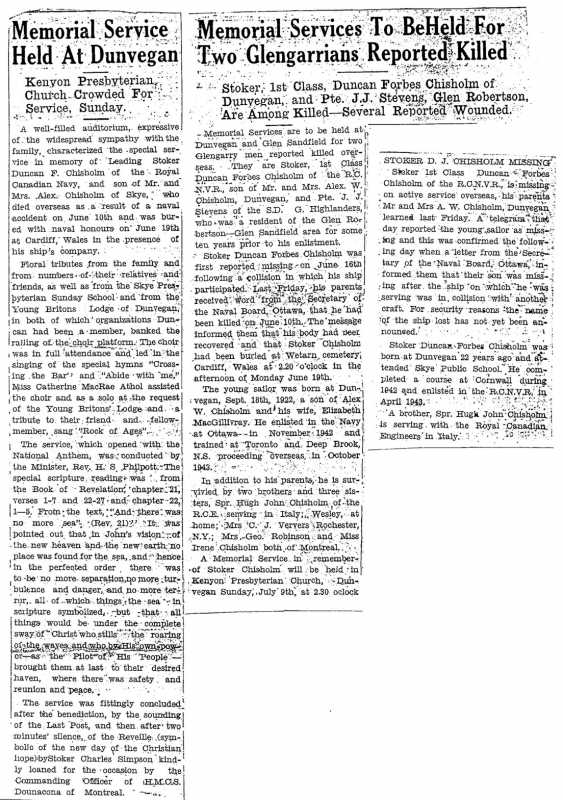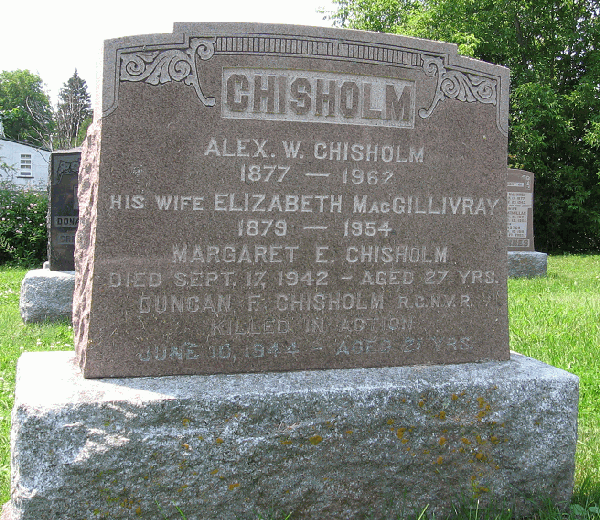 Fils de Alex. W. Chisholm et de Elizabeth Chisholm (née MacGillivray), de Dunvegan, Ontario, Canada.