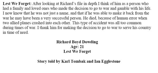 Fils de C. E. Dowding, et de Rosalind L. Dowding, de Oakville, Ontario, Canada.
