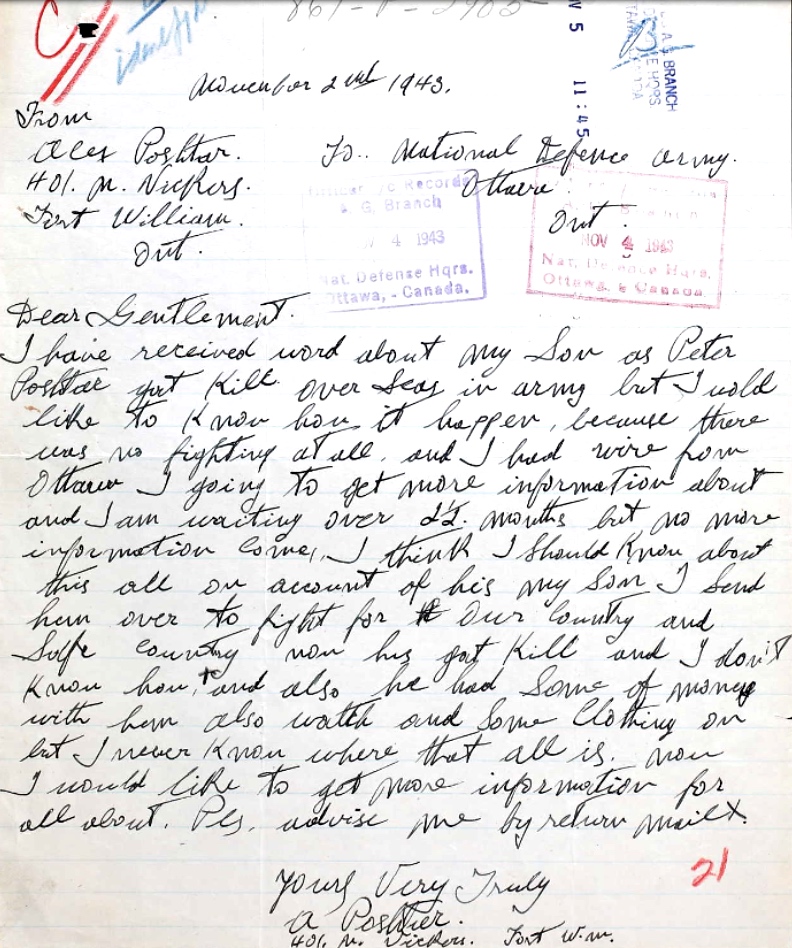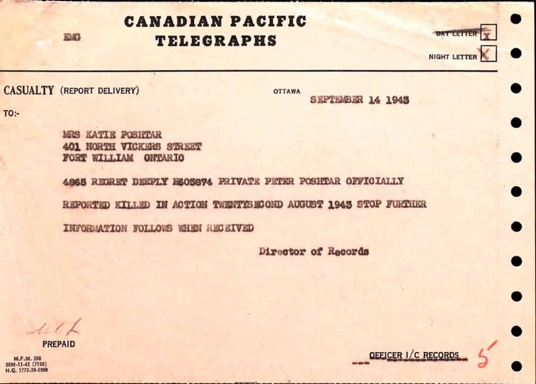 Fils de Alex et Katie Poshtar, de Fort William, Ontario.