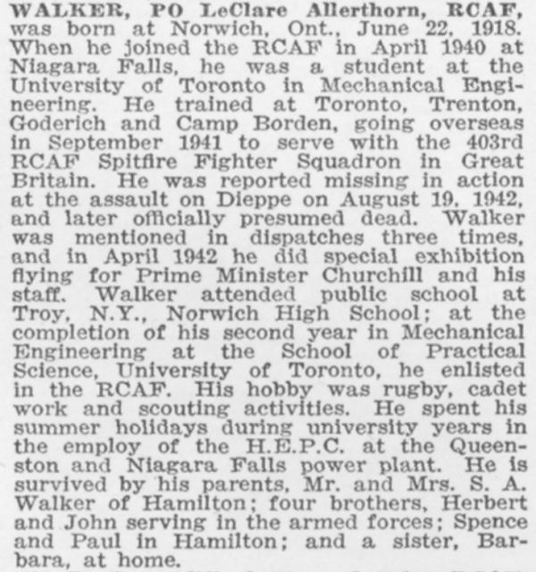 Fils de Spence A. et Mildred L. Walker, de Hamilton, Ontario.