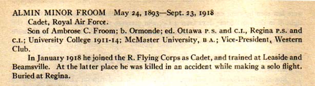 Fils d'Ambrose C. et Annie Froom de Regina, Saskatchewan.