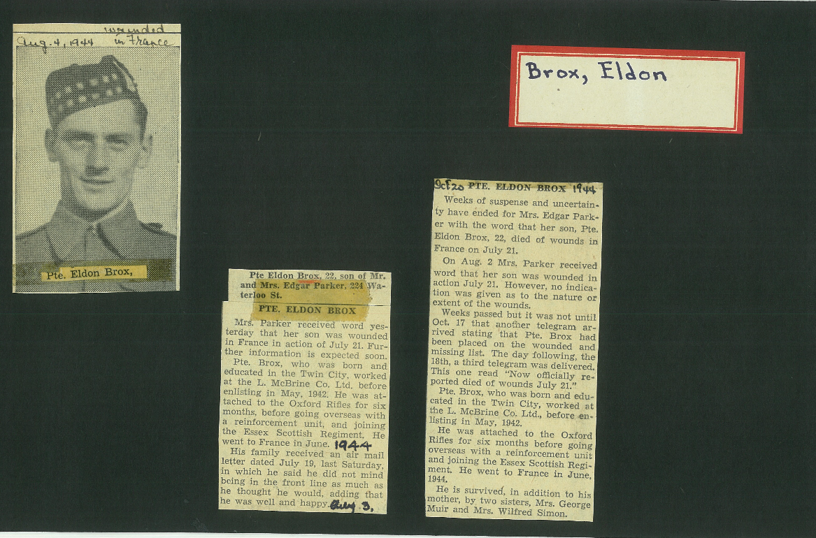 Fils de Eldon Brox, et de Elizabeth Brox, de Kitchener, Ontario.