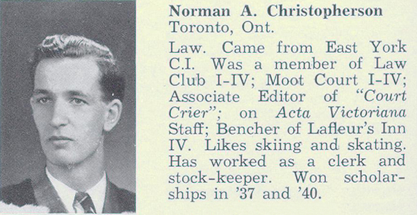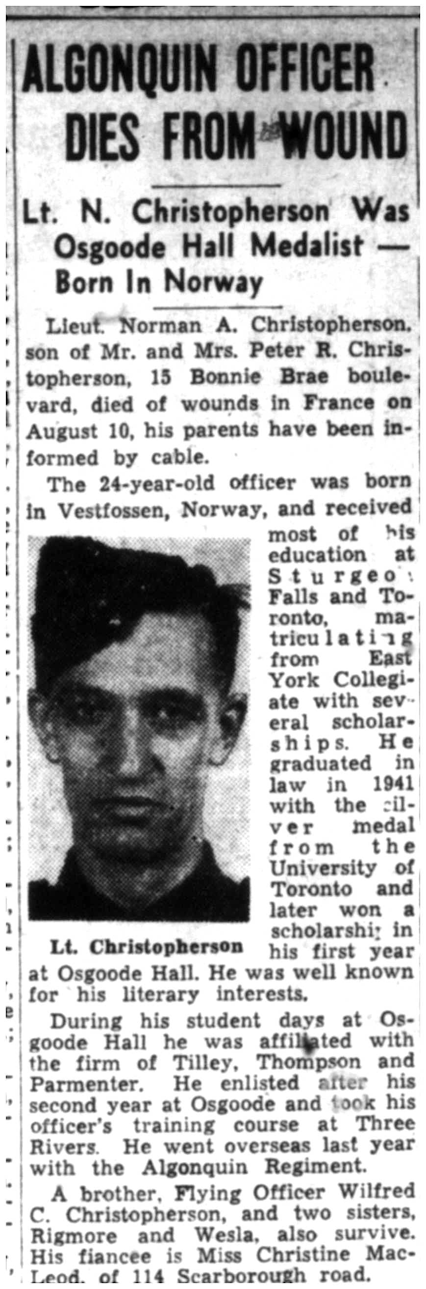 Fils de Peter R. et Hilda Christopherson, de Toronto, Ontario.