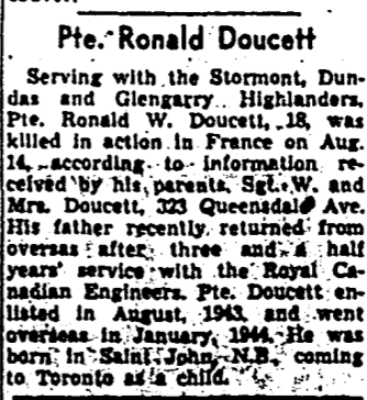 Fils de William et Eva Doucett, de Toronto, Ontario.