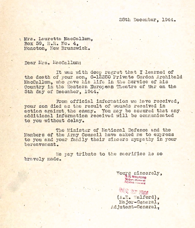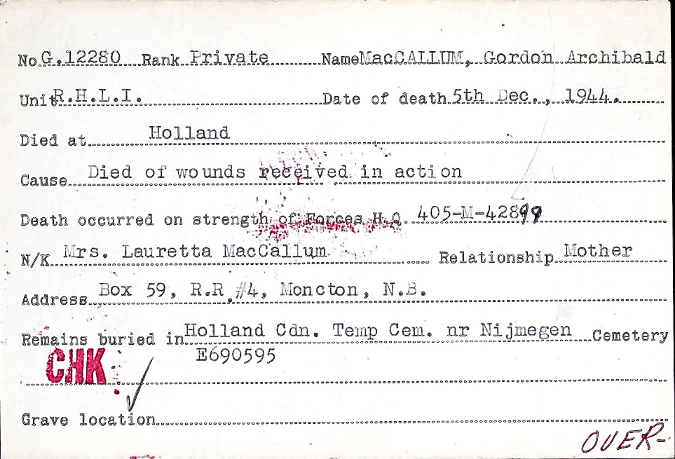 Galerie numérique de Soldat Gordon Archibald MacCallum