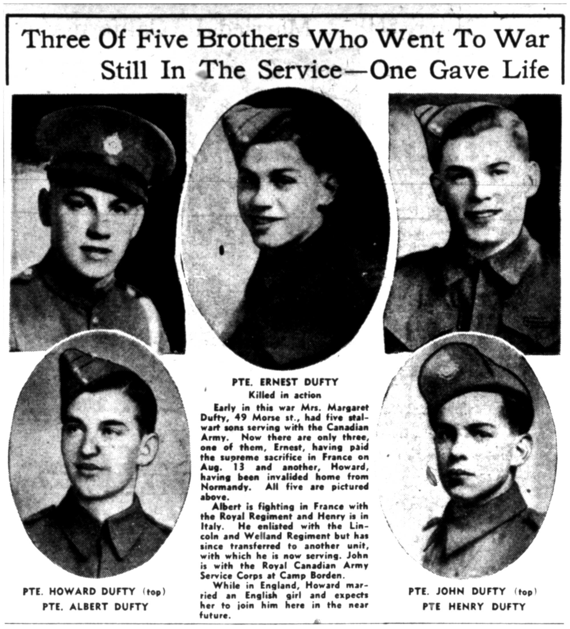 Fils de Albert et Margaret Elizabeth Dufty, de Toronto, Ontario.