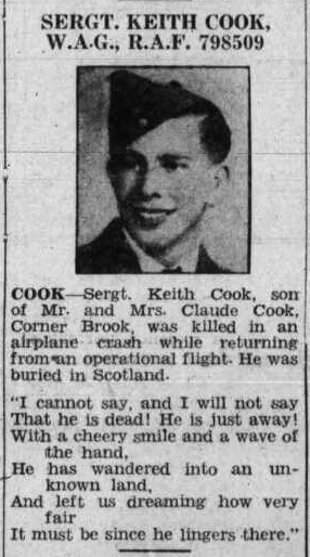 Fils de Claude et Tryphena Cook, de Corner Brook, Terre-Neuve, Canada.