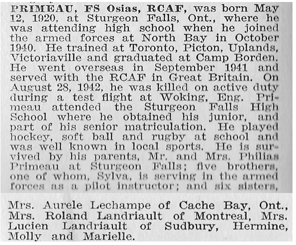 Galerie numérique de Flight Sergeant Joseph Louis Osias Primeau