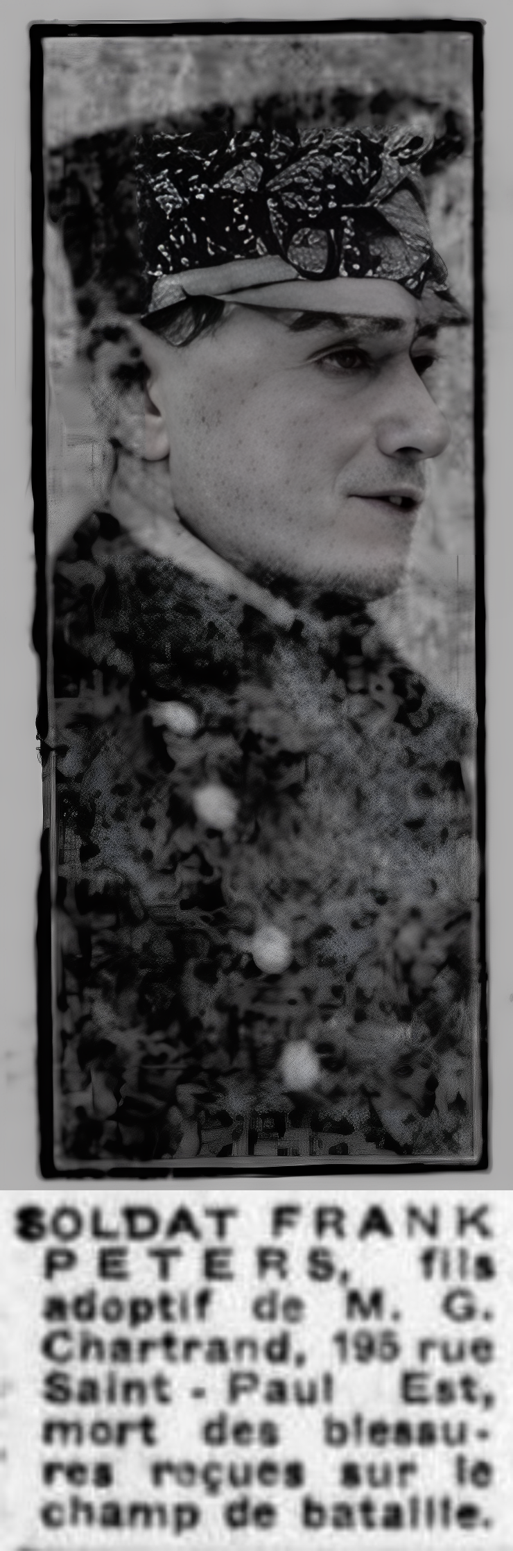 Arrivé au pays vers l'âge de 13 ans, il est adopté par Gédéon Chartrand et son épouse Marie Sauriol demeurant rue St-Paul, Montréal