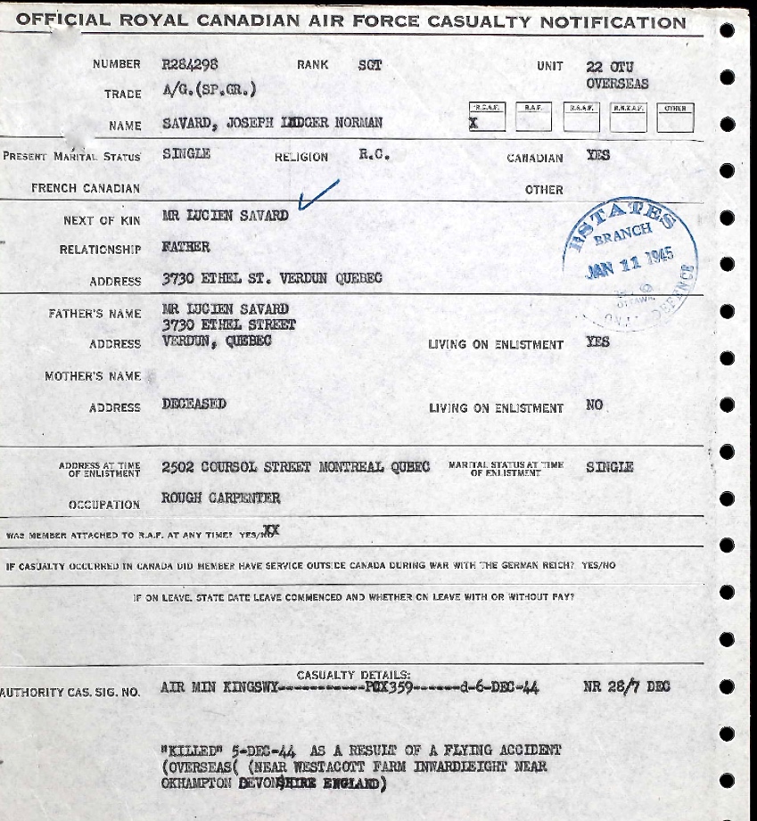 Galerie numérique de Sergent Joseph Ludger Norman Savard