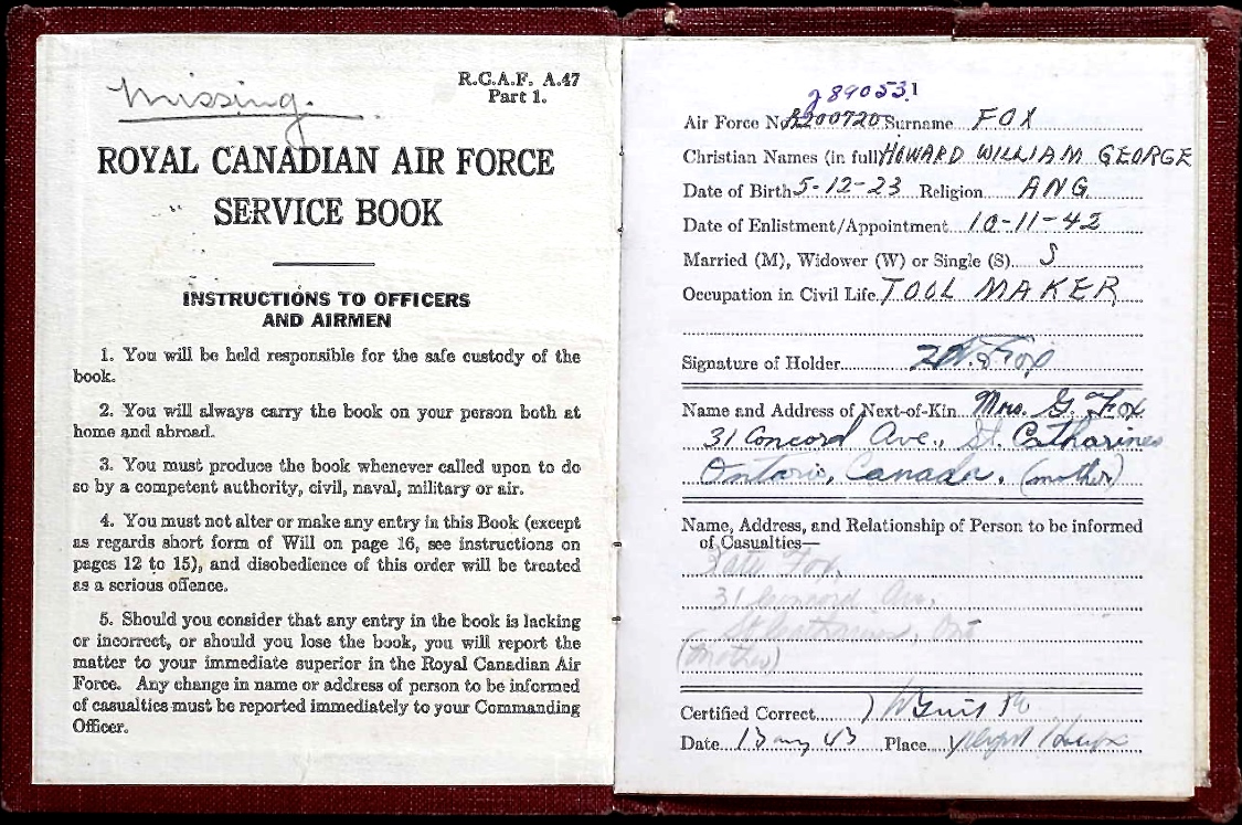 Galerie numérique de Sous-lieutenant d'aviation Howard William George Fox