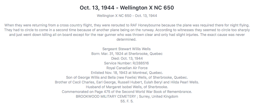 Fils de George W. Wells et Bella Wells, de Sherbrooke, Québec. Époux de Margaret I. Wells, de Sherbrooke.