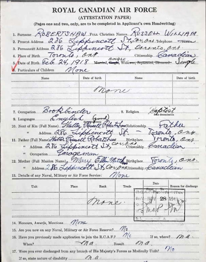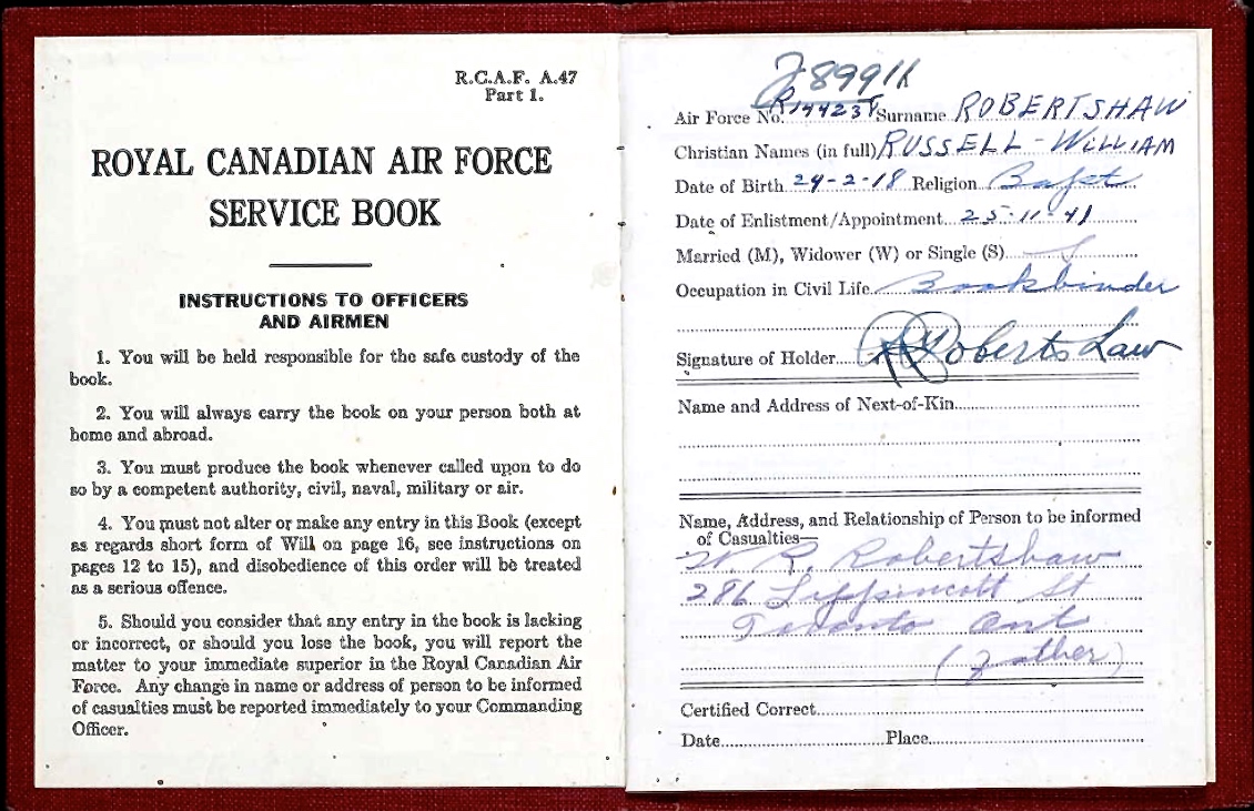Galerie numérique de Sous-lieutenant d'aviation Russell William Robertshaw