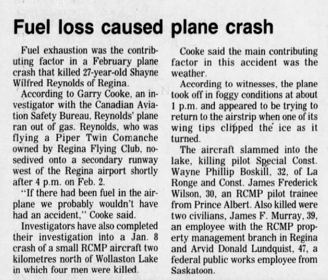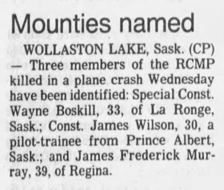 Le g.s. Wilson est né à Sherbrooke (Québec). Il a servi au sein des détachements de Manitou, Norway House et Flin Flon, au Manitoba, et dans le Service de renseignements et le service antidrogue, à Montréal. Il a également servi dans le détachement de Lac La Biche, en Alberta. En 1985, le g.s. Wilson a décidé de devenir gendarme spécial pour pouvoir être muté aux services de l’air. On a conclu que l’écrasement de l’avion avait probablement été causé par une panne moteur. Le g.s. Wilson était marié à Deborah et ils avaient deux enfants. Il est enterré dans le cimetière Brookside, à Winnipeg.