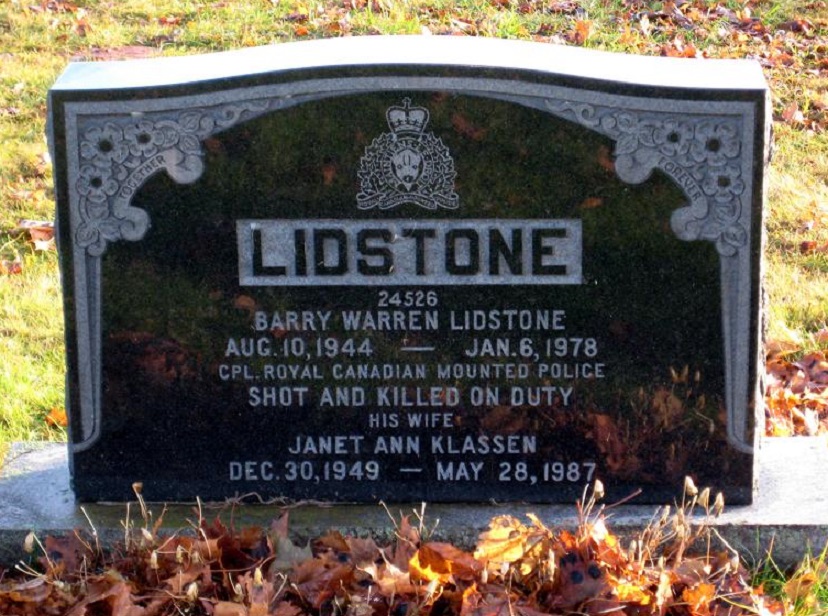 Le cap. Lidstone servi dans le Nord à Frobisher Bay, Griese Fiord, Yellowknife, Fort Rae et Igloolik, ainsi qu’à Grand Falls (NB). Le cap. Lidstone répondait à un appel en compagnie du gend. Lidstonewas était marié à Janet Ann et ils avaient deux filles. Il a été incinéré et ses cendres se trouvent au cimetière People’s Cemetery à Summerside (Île-du-Prince-Édouard).