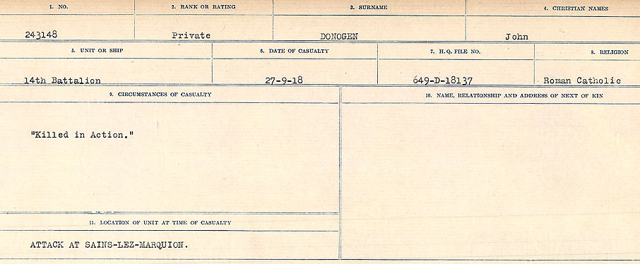 Page 399 du Livre du Souvenir de la Première Guerre mondiale.