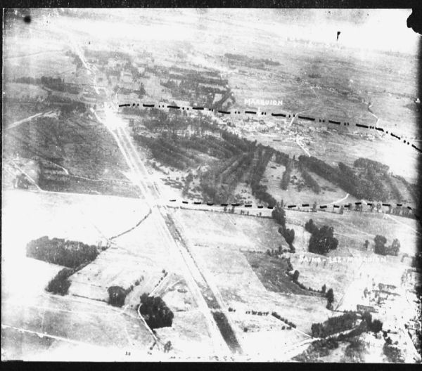 Sains-les-Marquion est un village situé à 12 kilomètres environ au nord-ouest de Cambrai et à 2 kilomètres au sud de la D939, la route qui relie Arras à Cambrai. Le cimetière britannique de Sains-les-Marquion se trouve à l'intersection des routes D15 et D16, à environ 1,5 kilomètres du centre du vlillage.