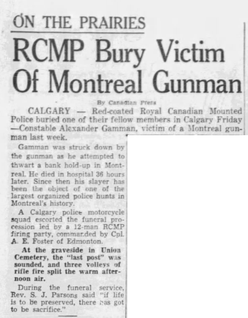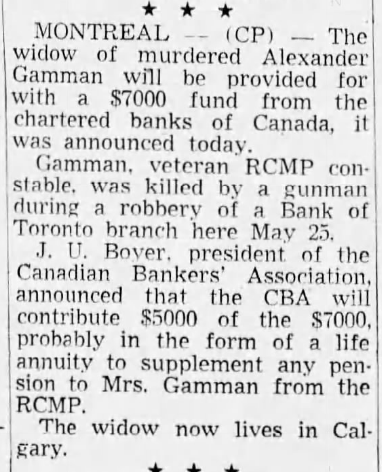 Le gend. Gamman est né en Angleterre. Il a été manœuvre de ferme, charretier et préposé au nettoyage à la CPCR. Il est entré au service de la RGCNO en 1914. Le gend. Gamman a quitté la Gendarmerie en 1933 puis s’est réenrôlé en 1940. Il est décédé des suites de ses blessures après avoir tenté d’arrêter un voleur de banque armé à Montréal (Québec). Le Roi George VI a décerné au gend. Gamman, à titre posthume, la Médaille royale de la police et des services d’incendie pour sa galanterie et ses actions « d’une grande bravoure et sans aucun égard à sa propre sécurité ». Ilda, veuve du gend. Gamman, a accepté la Médaille en son nom. Le gend. Gamman et son épouse ont eu trois enfants : Hazel Margaret, Shirley Mae et Jean Kathleen.