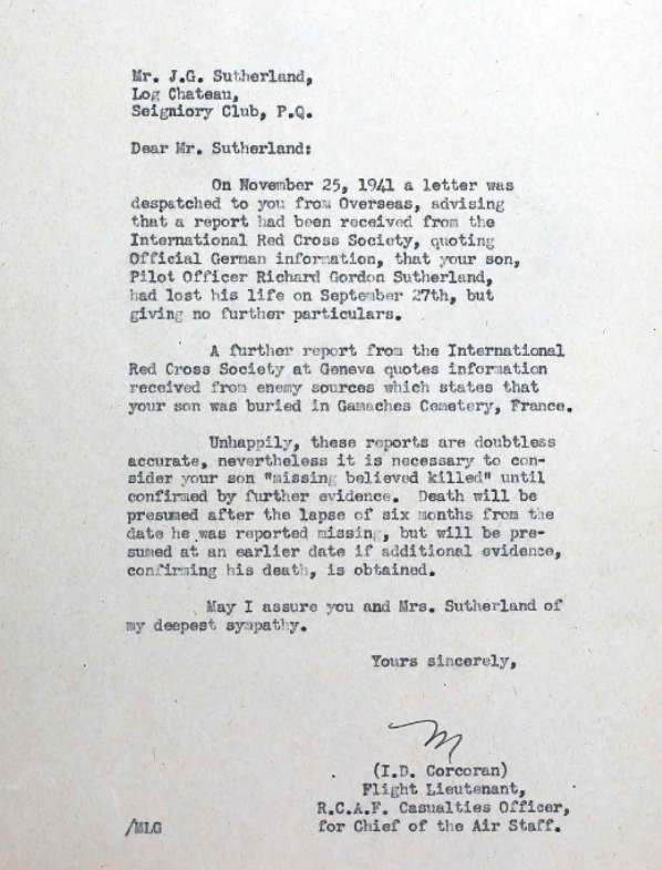 Galerie numérique de Sous-lieutenant d'aviation Richard Gordon Sutherland