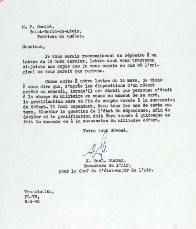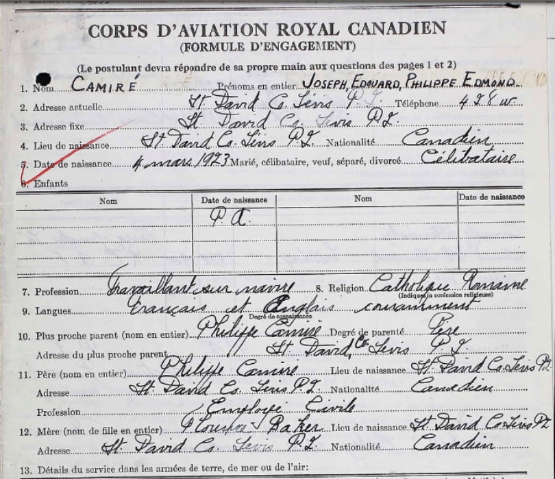 Fils de Philippe et Florence Camire, de St. David, Province de Québec.