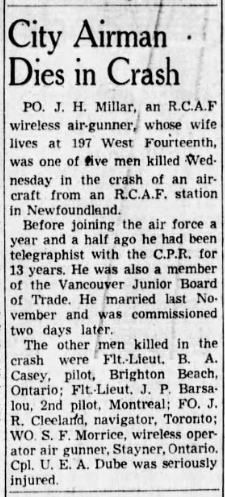 Fils de James et Agnes Millar, de Vancouver, Colombie-Britannique. Époux de Beatrice E. Millar, de Vancouver.