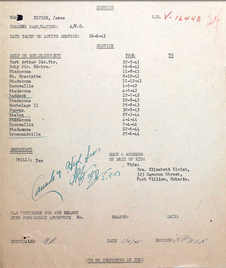 Fils d'Ernest et Lilian Elvish de Fort William, Ontario. Époux d'Elizabeth V. Elvish de Fort William.