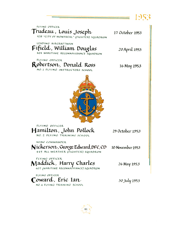 | 80002627 | Trudeau | Louis Joseph | 17 octobre 1953 | Lieutenant d'aviation | 438 "City of Montreal" (Fighter) Squadron |