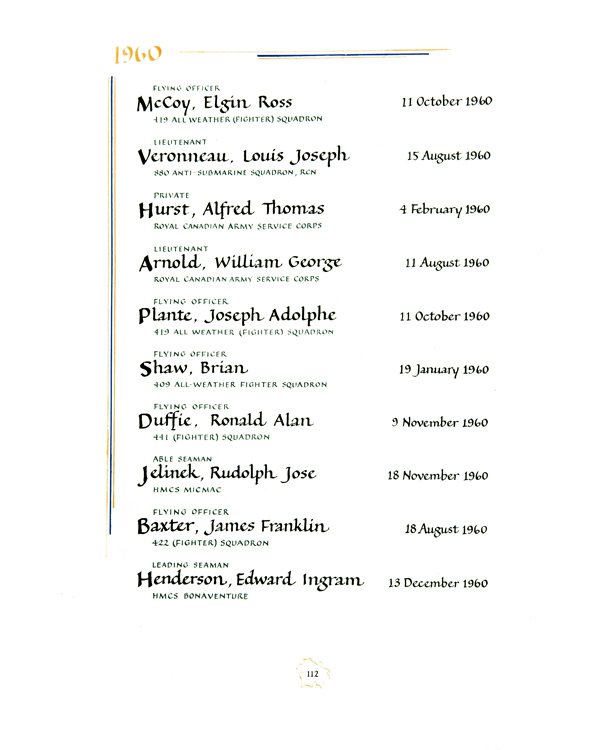 | 80002167 | Henderson | Edward Ingram | 13 décembre 1960 | Leading Seaman | HMCS Bonaventure |