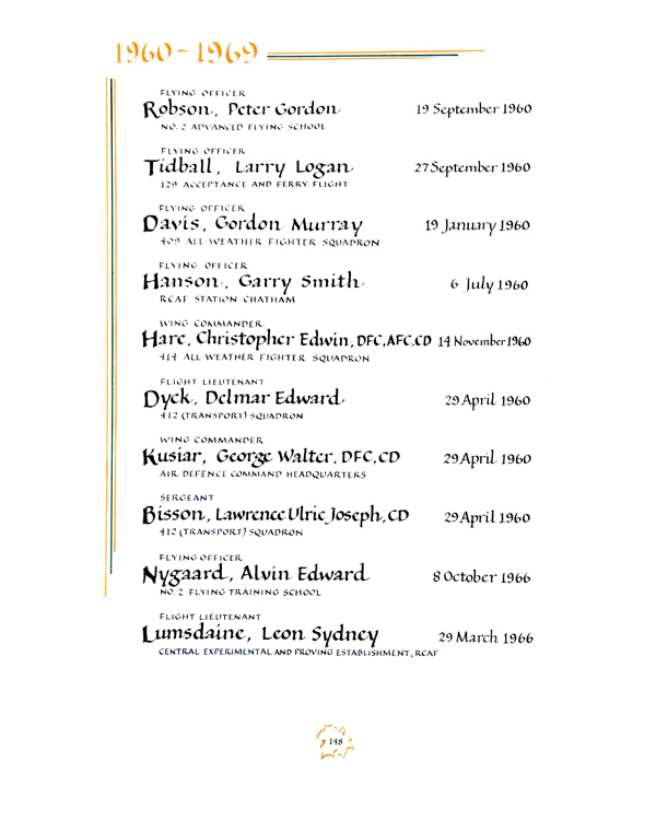 | 80002959 | Davis | Gordon Murray | 19 janvier 1960 | Lieutenant d'aviation | 409 All-Weather Fighter Squadron |
