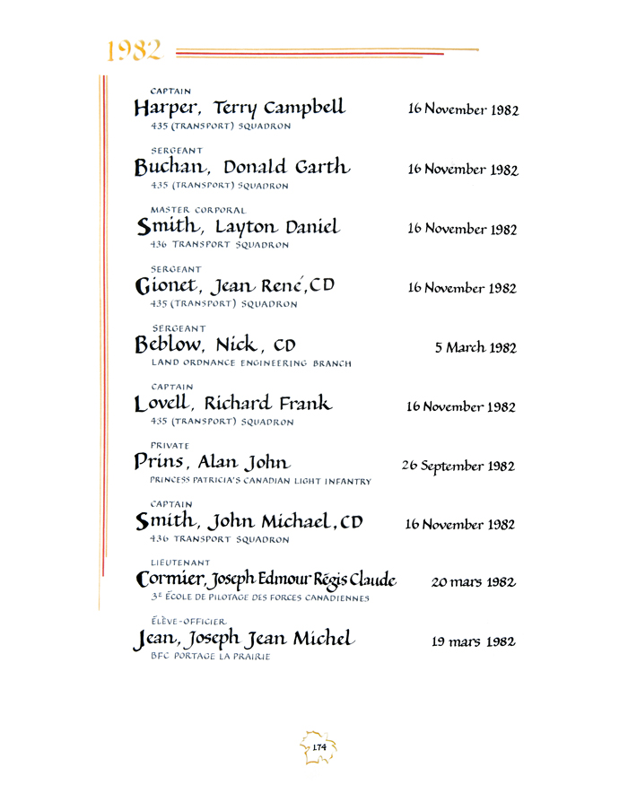 | 80002152 | Harper | Terry Campbell | 16 novembre 1982 | Capitaine | 435 (Transport) Squadron |